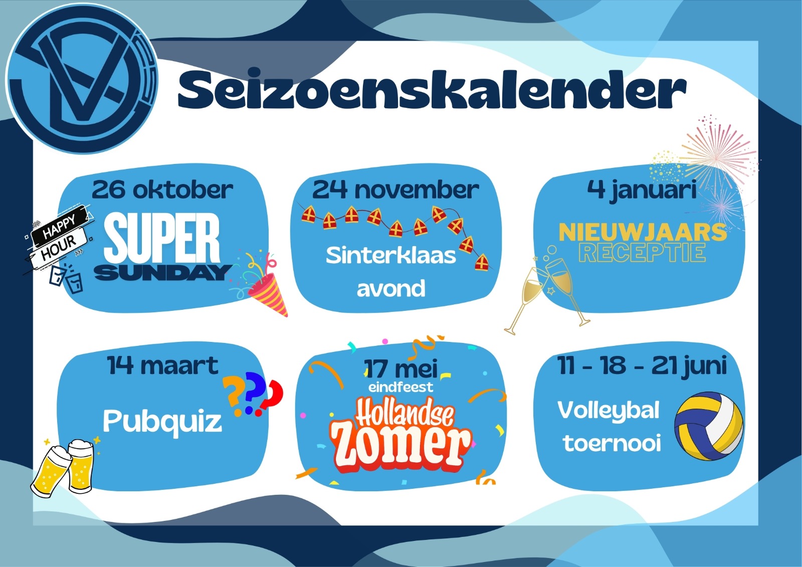 Onderstaand de seizoenskalender voor 2025-2026!
